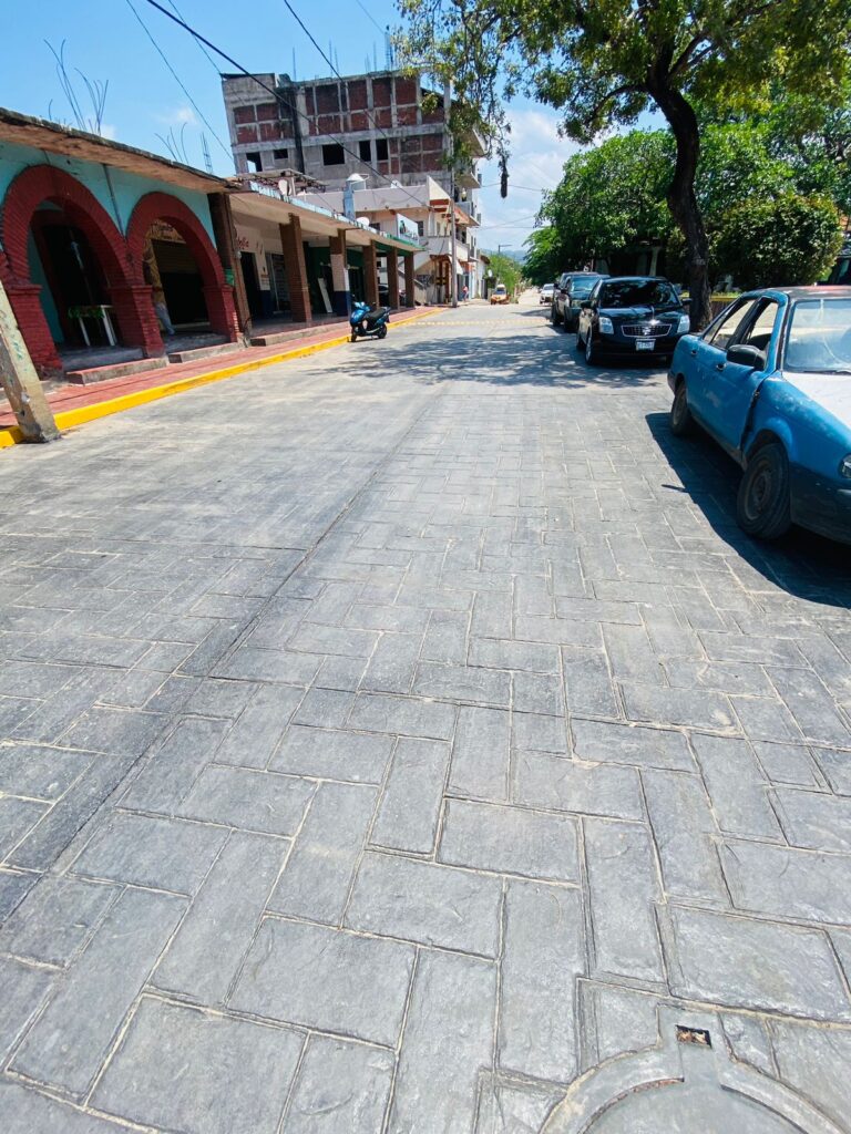 Además de la pavimentación con concreto en las calles, también se está llevando a cabo un estampado tipo adoquín en las banquetas. Esto no solo contribuirá a la estética del municipio, sino que también mejorará la seguridad y comodidad de los peatones.