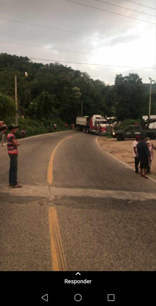 Sobre la carretera nacional Zihuatanejo-Acapulco frente a la entrada a la comunidad de Santa Rosa pobladores de ese lugar y pueblos de la sierra realizaron un bloqueo total de la vía de comunicación en ambos sentidos de la carretera y aseguró que no se van a quitar de ahí hasta que no les cumplan lo antes señalado, “Ya aguantamos mucho y no queremos que siga muriendo gente, por ello pido al Presidente Andres Manuel López Obrador que nos ayude, ya que de lo contarlo con o sin su ayuda vamos a convocar a los pueblos para armarnos, pero eso si nos vamos a defender”, aseguró.