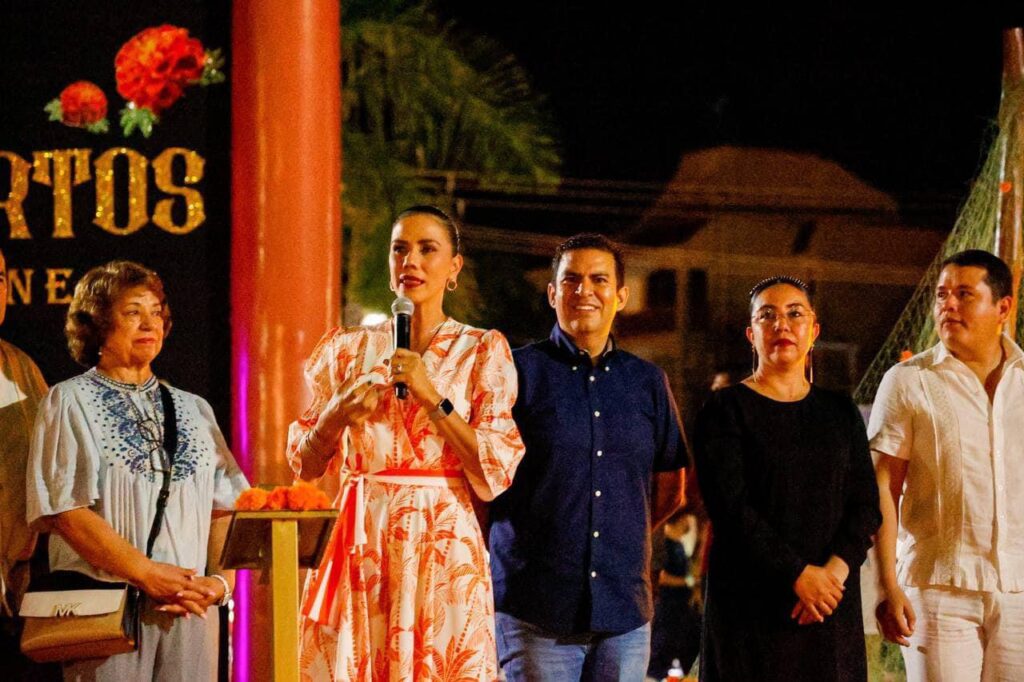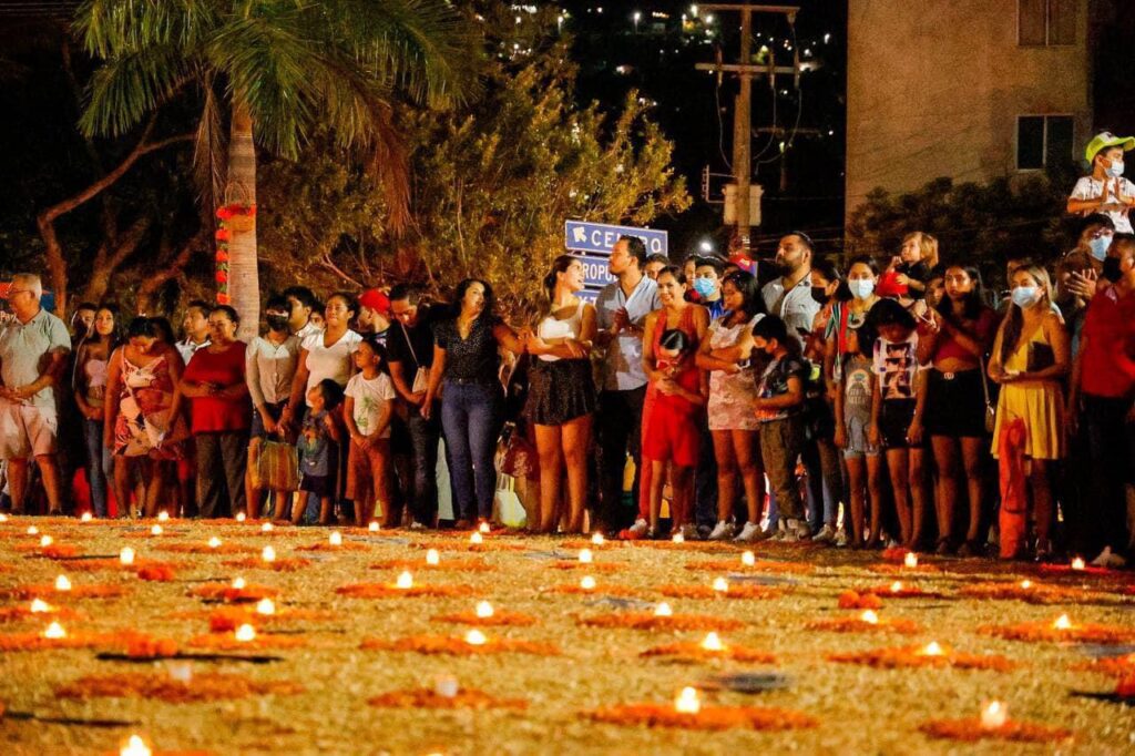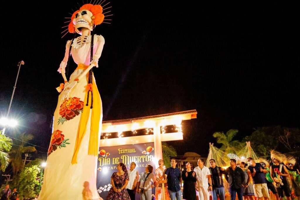 Zihuatanejo.- 31 de octubre del 2022.- El presidente Jorge Sánchez Allec acompañado de su esposa Lizette Tapia Castro realizó el encendido de la Catrina Monumental en la plaza Kioto. Fue la esposa del alcalde, quien al término del evento expresó que está Catrina es representante de las mujeres y hombres de mar y está lista para dar la bienvenida a nuestro Festival de Día de Muertos. Con este encendido, comenzó de manera oficial el Festival de Día Muertos 2022 en Ixtapa Zihuatanejo que incluye 5 días de diversas actividades incluido el tradicional Desfile de Catrinas por las principales avenidas de la ciudad.
