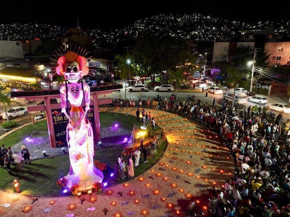 Dio inicio Festival de Día de Muertos en Zihuatanejo con encendido de Catrina Monumental.