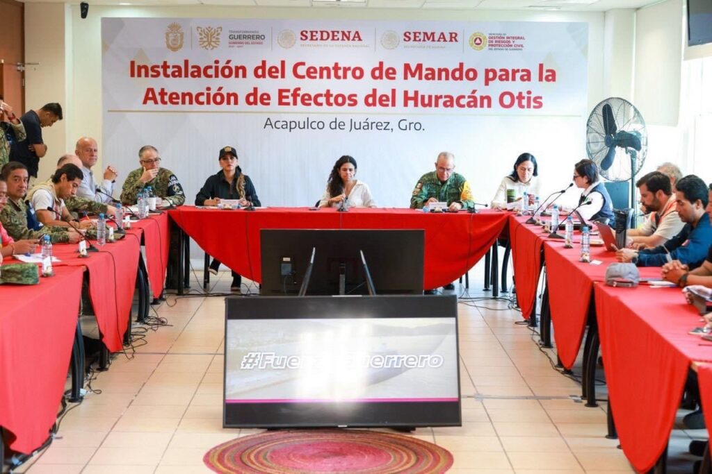 Acapulco, Gro., 11 de noviembre de 2023.- Durante la reunión diaria que se realiza en el Centro de Mando para la Atención de los Efectos del Huracán Otis, en donde se definen las estrategias del Plan de Reconstrucción y Rehabilitación que encabezan la gobernadora Evelyn Salgado Pineda, y la secretaria de Gobernación Federal, Luisa María Alcalde Luján; se destacó la ayuda emergente que siguen brindando los gobiernos federal y estatal a las familias damnificadas.
