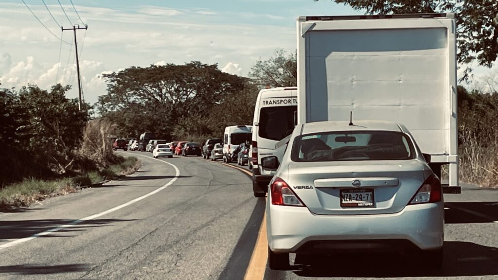 Mientras que en el tramo carretero entre Zihuatanejo y la caseta de Feliciano en el municipio de La Unión la fila para llegar a la autopista Siglo 21, es de más de 5 kilómetros ya que llega hasta la comunidad de Joluta.