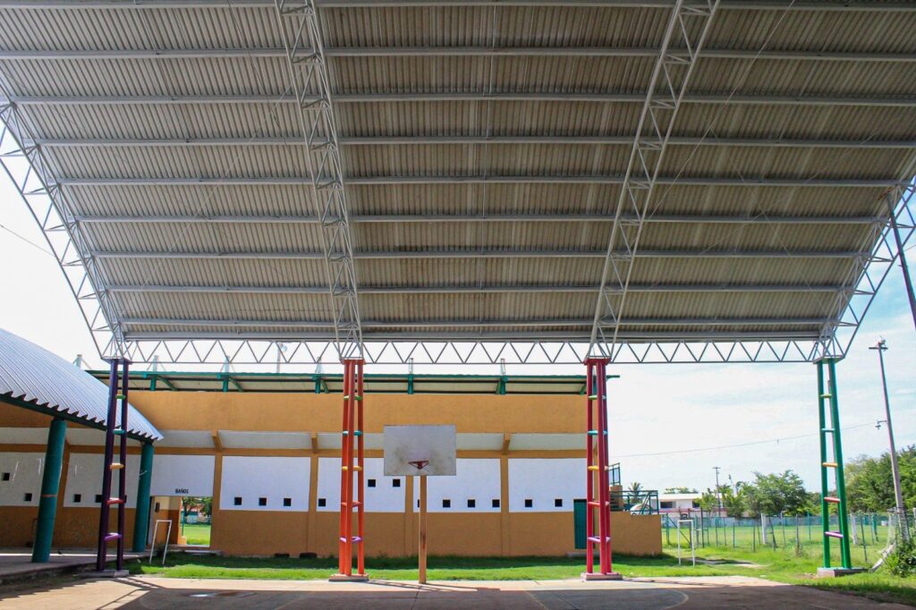 La nueva techumbre proporciona una cobertura completa sobre una de las canchas de la explanada municipal, creando un ambiente protegido y cómodo para los deportistas y espectadores. Los ciudadanos de Petatlán ahora podrán disfrutar de actividades deportivas y recreativas sin preocuparse por las inclemencias del clima, como la lluvia intensa o el sol abrasador.