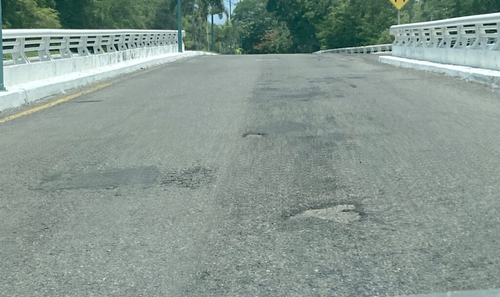 Transportistas informaron que las lluvias de los últimos días provocaron baches en los “puentes cuates” de Ixtapa, por lo que se requiere una rehabilitación de la vialidad.