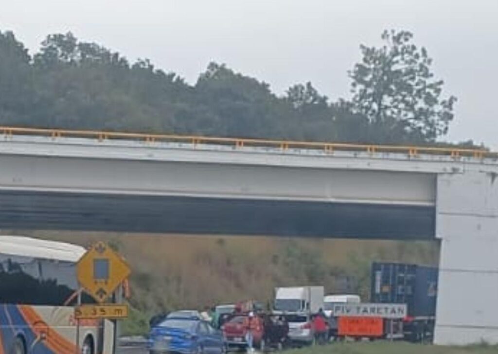 Taretan, Michoacán, diciembre 11 de 2023.- Se reporta persecución y balacera en la Autopista Siglo XXI, a la altura del kilómetro110, cerca de la caseta de peaje de Taretan.
