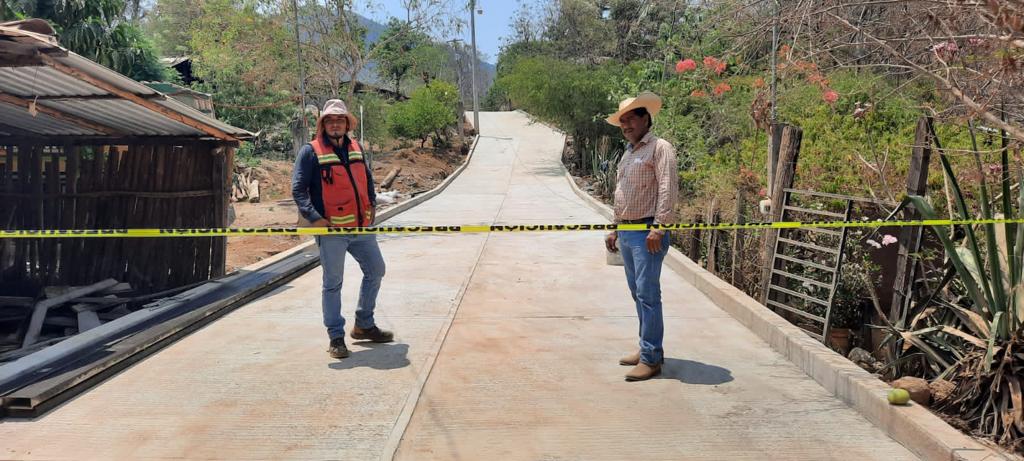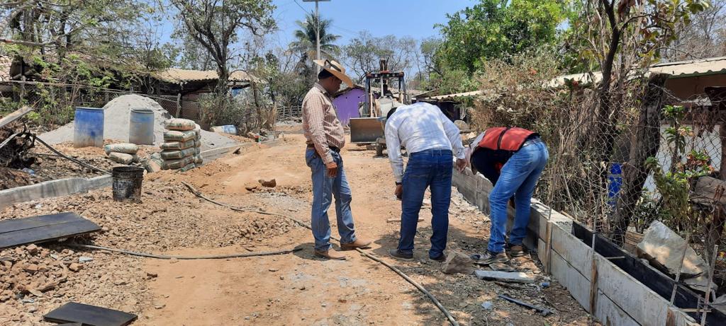 Presidente Crescencio Reyes supervisa avance de pavimentación en Benítez, municipio de La Unión