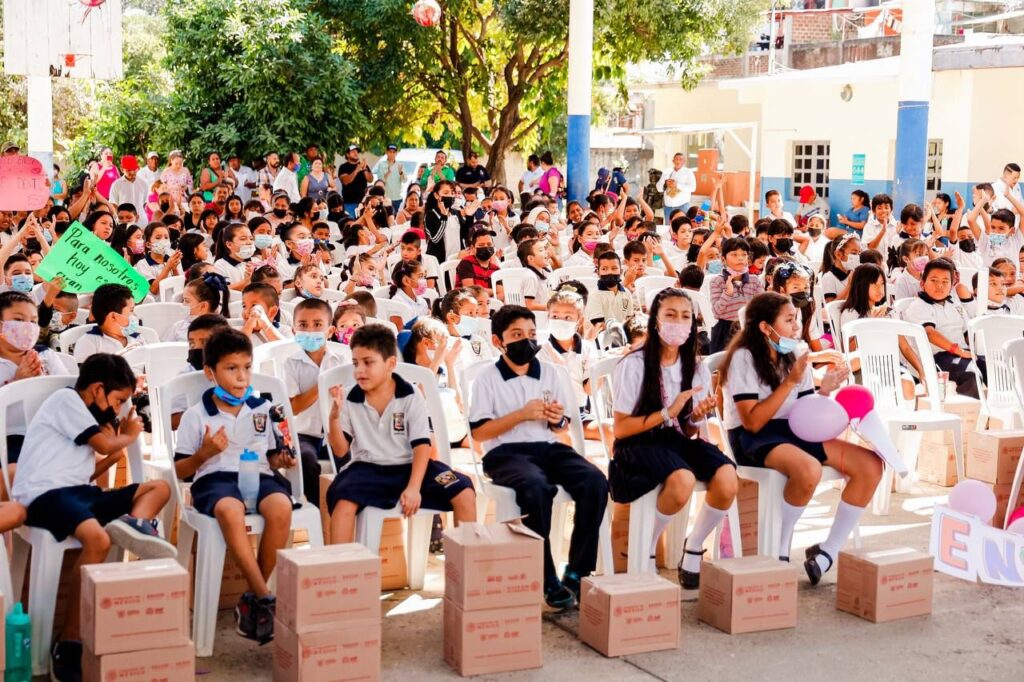 Zihuatanejo, Gro., a 27 de enero de 2023.- El presidente Jorge Sánchez Allec, acompañado de la presidenta del DIF Guerrero, Liz Adriana Salgado Pineda, integrantes del Cabildo y el director del DIF Zihuatanejo, Luis Gerardo Jiménez Merel, dio este jueves el banderazo de inicio de Construcción de la techumbre de la explanada cívica de la escuela primaria Federal “Insurgentes” de la colonia Cuauhtémoc, donde también se entregaron apoyos del programa de Desayunos Escolares Calientes “Letras Sanas”, en beneficio de más de 300 alumnos de dicho plantel educativo y un total de más de 20 mil paquetes alimentarios en tan solo esta semana en diferentes instituciones educativas.