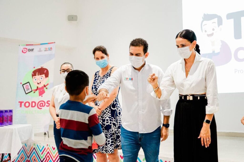 Junto a su esposa Lizette Tapia Castro, el presidente Jorge Sánchez Allec encabezó una entrega más de tabletas electrónicas subsidiadas, dichos dispositivos fueron designados a alumnos de educación básica, como parte de las acciones que se realizan desde el gobierno municipal de Zihuatanejo de Azueta a través del programa Todos Conectados. “Este programa lo impulsamos junto con mi esposa Liz Tapia, con quien he entregado de manera periódica tabletas subsidiadas a los alumnos de educación básica y de esta formar vamos avanzando para mejorar la calidad educativa de los alumnos zankas”.