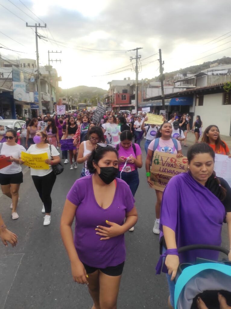 Protestan colectivos de mujeres durante marcha en conmemoración del 8M en Zihuatanejo