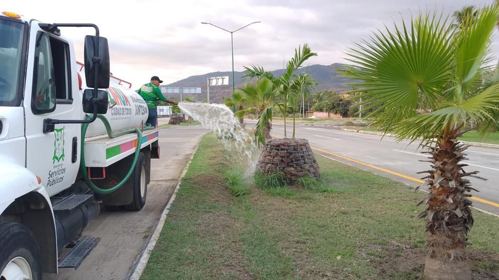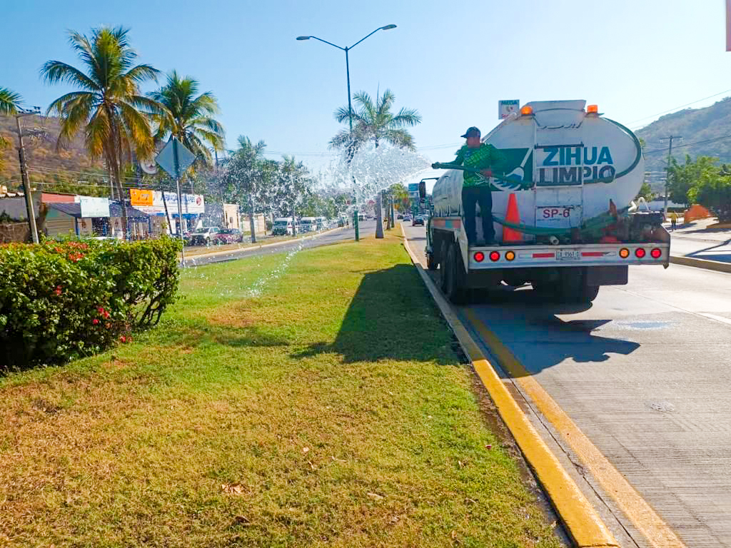 Agregó que, para llevar a cabo estos trabajos, el departamento de Parques y Jardines tiene asignadas cinco pipas que son utilizadas durante cuatro horas diarias para el riego de las áreas verdes distribuidas en toda la zona urbana de Zihuatanejo, actividad que previo a la temporada de estiaje se estará desarrollando en los turnos matutino, vespertino y nocturno.