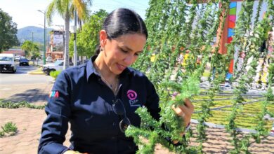 Instalan y adornan monumental pino navideño en la glorieta Plaza Kioto