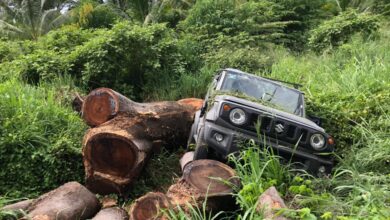 Vehículo volcó y chocó contra troncos al salirse de la Acapulco-Zihuatanejo
