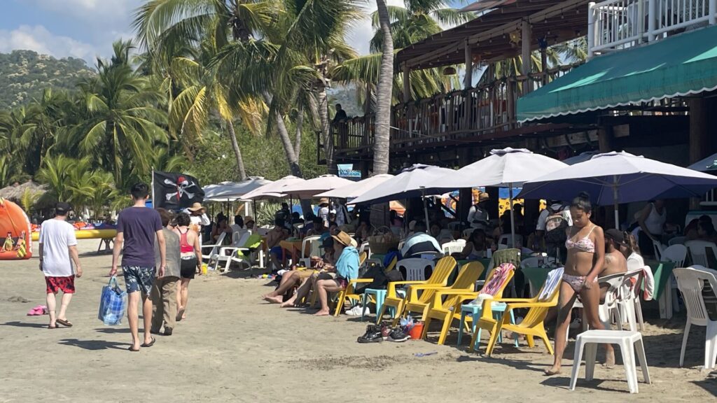 Zihuatanejo.- 17 de diciembre del 2023.- Turistas nacionales y extranjeros visitan este domingo la playas de Zihuatanejo donde los restaurantes y principales balnearios registran gran afluencia en este primer fin de semana de vacaciones de invierno.