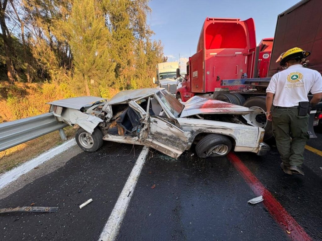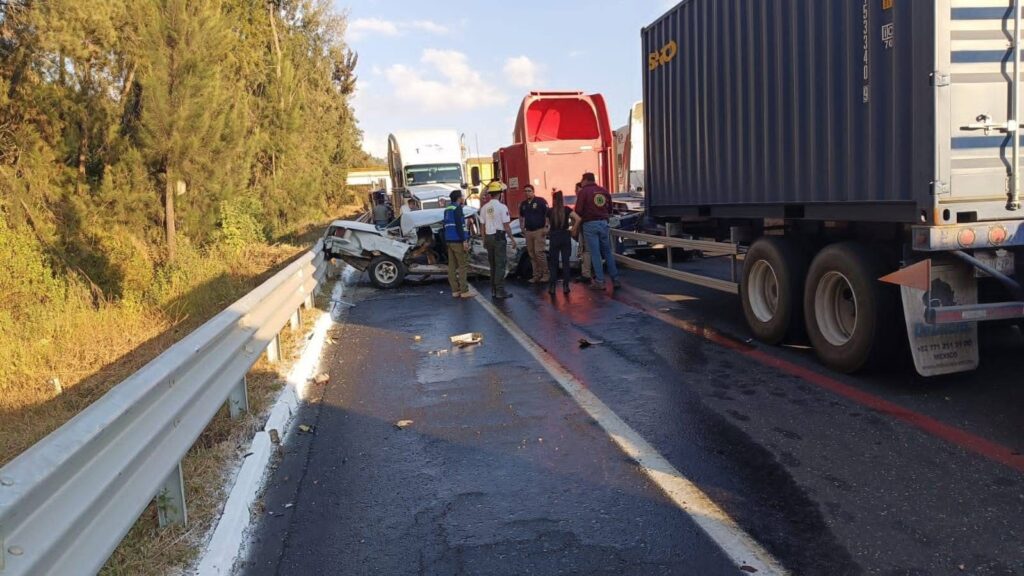Ziracuaretiro, Mich.- La tarde de este viernes, en la autopista Siglo XXI se registró un aparatoso choque en el que estuvieron involucrados un camión de la carga y un auto particular, esta última unidad terminó destrozada tras el fuerte impacto. A 29 kilómetros ocurrió otra colisión entre un carro y otro tráiler.